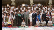 Queen Letizia attended a reception to members of the Ruta Quetzal BBVA 2014 expedition at El P... (HD)
