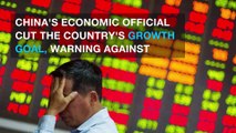 China slashes growth goal, warns against trade control