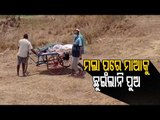 Why is this elderly woman being carried on a trolley rickshaw in this scorching condition outside? <br />