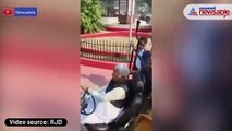 Lalu Yadav goes for a drive in his jeep