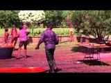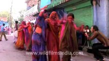 People enjoying the festival of Holi in Rajasthan.<br /><br />One of the major festivals of India, Holi is celebrated with enthusiasm and gaiety on the full moon day in the month of Phalgun which is the month of March as per the Gregorian calendar.Holi festival may be celebrated with various names and people of different states might be following different traditions. But, what makes Holi so unique and special is the spirit of it which remains the same throughout the country and even across the globe, wherever it is celebrated. The main day, Holi, also known as Dhuli Vandana in Sanskrit,also Dhulheti, Dhulandi or Dhulendi, is celebrated by people throwing coloured powder and coloured water at each other. Bonfires are lit the day before, also known as Holika Dahan (burning of Holika) or Chhoti Holi (little Holi). The bonfires are lit in memory of the miraculous escape that young Prahlad accomplished when Demoness Holika, sister of Hiranyakashipu, carried him into the fire. Holika was burnt but Prahlad, a staunch devotee of god Vishnu, escaped without any injuries due to his unshakable devotion. Holika Dahan is referred to as Kama Dahanam in South India.<br />Holi is celebrated at the end of the winter season on the last full moon day of the lunar month Phalguna (February/March), (Phalgun Purnima), which usually falls in the later part of February or March. In 2009, Holi (Dhulandi) was on March 11 and Holika Dahan was on March 10. In 2010, Holi was on March 1 and Holika Dahan was on February 28.Rangapanchami occurs a few days later on a Panchami (fifth day of the full moon), marking the end of festivities involving colours. <br /><br />"This clip of professionally-shot broadcast stock footage belongs to the archive of Wilderness Films India Ltd., and has been filmed on either Digital Betacam or 1080i HD. Please write to us for licensing queries at rupindang [at] gmail [dot] com and admin@wildfilmsindia.com.”<br />