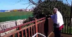Care home resident Maggie Winters cheering on Farringdon Academy football team