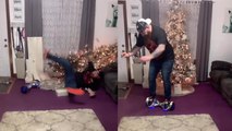 'Everything that could have gone wrong did go wrong when Mathew Smith decided to get on his daughter's hoverboard. <br /><br />Surfacing from Portsmouth, England, this funny footage captures the moment Mathew found out why riding a hoverboard isn't something one masters at their first attempt. <br /><br />"This is my daughter's hoverboard and her dad was desperate to have a go!" the filmer, Louise Smith revealed. "This was the result! Although the video is almost two years old, we just can't forget how funny it was!"<br /><br />The comical scene comes to an end with the subject buried under the fabric cases that fell on him during the fail. <br /><br /><br />Name: Louise Smith<br />Location: Portsmouth, England<br />'<br />WooGlobe Ref : WGA182967<br />For licensing and to use this video, please email licensing@wooglobe.com