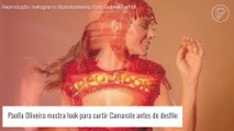 Carnaval 2022: Paolla Oliveira deixa barriga definida à mostra em look com recorte antes de desfile