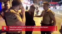 Taksiciye sahte dolar verdi; bekçiler takiple yakaladı! O anlar kamerada