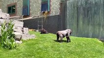 Gorilla youngster rolls down slope in Twycross zoo