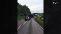 Inusitado: PRF escolta 'cavaleiro bêbado' no meio da rodovia BR-163, em Lindoeste