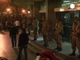 Efectivos de bomberos trabajan a esta hora de la tarde en la extinción de un incendio declarado en una vivienda de la avenida Juan Carlos I, en Los Cristianos, Arona.