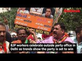 BJP workers celebrate outside party office in Delhi as trends show the party is set to win