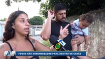 Fogos são arremessados para dentro de casas