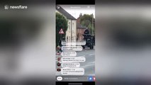 This is the dramatic moment a suspected barbecue or garden fire lit on the hottest day on record in the UK spread before engulfing and destroying nearby houses. Four homes were destroyed after the fire spread rapidly and tore through properties in Woodland Drive in Barnsley, South Yorks., within minutes. Another house nearby was badly damaged while gardens have been damaged by the inferno. It is believed the fire started when children living at one of the pre-fab houses started a fire between the garden shed and the boundary fence just after 3.30pm on Tuesday. Heroic neighbours fought the flames with a hosepipe and rescued residents as they waited for the fire brigade to arrive as crews were tied up elsewhere. CCTV footage shows smoke emerging from the scene before flames quickly take hold and the inferno spreads. A man in the house can be seen trying to fight back the flames with a hosepipe or bucket. Later, a woman from the house can be seen frantically pacing the street as she appears to shout for help. Dramatically, the fire spreads and the camera cuts off as the UPVC conservatory frame the camera is sat on melts under the intense heat. Married father-of-one Carl Fox, whose CCTV captured the beginning of the blaze, said he was 'five or ten minutes' from losing his house.