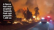 A fierce and fast-moving wildfire erupted near Yosemite National Park quickly spreading over 1,600 acres. <br /> <br />The aggressivity of the blaze has prompted the evacuation of thousands of people and the shutting off of power to more than 2,000 homes and businesses. <br /> <br />The Oak Fire began in a park near Midpines in Mariposa County while firefighters were trying to control an earlier blaze that burned to the edge of a grove of giant sequoias in Yosemite Park. Report by Petruscollm. Like us on Facebook at http://www.facebook.com/itn and follow us on Twitter at http://twitter.com/itn