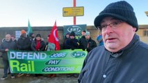 RMT Preston branch chairperson Mark McCarrick at the RMT (the National Union of Rail, Maritime and Transport) strike, official picket near Preston train station.