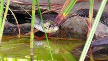 This snake decided to eat another snake when got hungry. With its mouth spread wide open, it swallowed the smaller snake, inch by inch, and twisted its body in the grass to allow its prey to slide in deeper. People could only watch in awe at the sight unfolding in front of them.