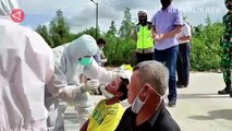 Petugas kesehatan bersiap menyuntikkan vaksin COVID-19 kepada seorang warga di terowongan Jalan Kendal, Jakarta, Sabtu (30/7/2022).