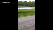 Quick and heavy rains soon turned into flash floods in Illinois' Decatur city and the underpasses leading out of town became inaccessible as the roads were flooded. Vehicles could be seen submerged in the flood waters just off the main downtown area.