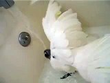 Coco takes a bath in the tub