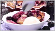 This video shows you how to make cobbler with tart and ripe end-of-season blackberries, sweet Gala apples, and an almond-flecked biscuit topping. The seasonal flavors of this Apple-Blackberry Cobbler recipe perfectly bridge the transitional time between summer and fall, which makes this classic and easy dessert simultaneously bright-and-fresh and warm-and-cozy. The biscuit topping is just as easy to make as the apple-blackberry filling, and it bakes off tender on the inside, but crispy on top. Serve with a dollop of fresh whipped cream or vanilla ice cream for the perfect finishing touch.