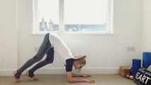 This woman was trying to do a handstand but lost her balance and fell into the bush as she tried to kick up against a huge signboard.