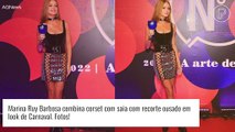 Marina Ruy Barbosa combina corset com saia com recorte ousado em look de Carnaval. Fotos!