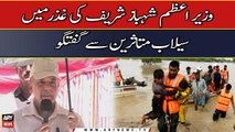 Prime Minister Shehbaz Sharif talks to flood victims