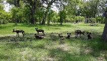 DRAMA as ORYX mother gets split from her BABY, WILD DOGS...takes their opportunity not for sensitive