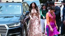 Telugu actress Rashmika Mandanna looked gorgeous in a lehenga at the trailer launch of her Bollywood debut movie "Goodbye".