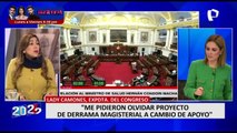 The Peruvian Congress approved on Monday the motion of censure through which it removed Lady Camones as its president, after a conversation between her and the leader of the Alianza Para el Progreso (APP) party, César Acuña, in which she would benefit him with the approval of a bill, was leaked. teleSUR