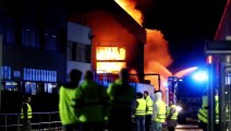 Los bomberos trabajan en el incendio que afecta a cinco naves de una empresa en Valencia