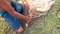 Traditional Net Catch Fishing Village Ponds Cast Net Fishing Video - Catching Ton's of Carp Fish