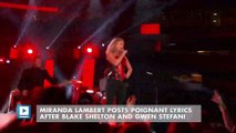Miranda Lambert Posts Poignant Lyrics After Blake Shelton and Gwen Stefani