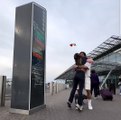 Sandro Tonali greets his wife-to-be, Juliette Pastore at Newcastle airport