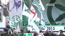 Il governatore del Veneto, Luca Zaia, si è presentato sul palco di Pontida, a Bergamo, accompagnato dai suoi consiglieri che hanno srotolato una grande bandiera con il Leone di San Marco. Durante la sua presentazione, lo speaker dell'evento ha affermato che "Il presidente della regione veneta è stato eletto con il 77%, un risultato mai visto in nessuna regione, nemmeno in Bulgaria". Zaia, una volta salito sul palco, ha voluto evidenziare come non si dica voto bulgaro ma "voto veneto" . .di Edoardo Bianchi e Andrea Lattanzi