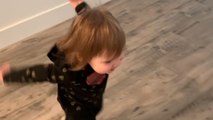 Adorable 2-year-old meets newborn puppy -