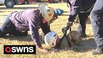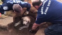 Firefighters rescue blind dog that fell down 15-foot hole