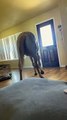 Occurred on September 20, 2022 / USA<br /><br />: The horses have access to our house when they are in the front pasture during the afternoons. My son was outside playing and when he came inside to relax he forgot to shut the kitchen door. We were sitting on the couch watching tv when I suddenly hear horse hooves hit the tile floor of my kitchen! I quickly grabbed my phone and started recording in hopes to catch the culprit on camera so I could send it to my husband. I was not surprised to see that it was my yearling filly “Ima Slick Red Peppy” also known as Peppy walk into my living room area to check the place out! After letting her explore for a few moments I was able to escort her calmly back out of the kitchen and shut the door.