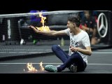 Protester sets arm on fire during Laver Cup tennis match ahead of