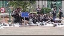 Aparat keamanan menembakkan gas air mata untuk menghalau suporter yang masuk lapangan usai pertandingan sepak bola BRI Liga 1 antara Arema melawan Persebaya di Stadion Kanjuruhan, Malang, Sabtu (1/10/2022).