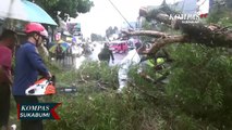 SUKABUMI, KOMPAS.TV - Pohon besar yang ada di Jalan Surya Kencana, Kota Sukabumi, Tumbang menutupi badan jalan dan mengakibatkan arus lalulintas tidak bisa dilalui. Peristiwa itu, terjadi setelah hujan deras yang disertai angin kencang mengguyur Wilayah Kota Sukabumi sejak semalam, hingga membuat pohon besar tumbang ke jalan. <br /> <br />Dalam peristiwa itu, tidak ada korban jiwa. Saat ini sejumlah petugas BPBD, dibantu tni polri tengah melakukan mengevakuasi pohon tumbang yang menutupi badan jalan. Agar jalan dapat dilalui kembali., <br /> <br />BPBD Kota Sukabumi mengimbau Warga dan pengguna jalan,jika terjadi hujan deras yang disertai angin kencan untuk lebih meningkatkan kewaspadaan., <br /> <br />Artikel ini bisa dilihat di : https://www.kompas.tv/article/334783/cuaca-ekstrim-pohon-besar-tumbang-ke-jalan