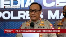 KOMPAS.TV - Polisi sudah memeriksa 29 orang saksi dan anggota polisi terkait tragedi kanjuruhan. Selain itu sejumlah CCTV di sekitar TKP juga diperiksa. <br /> <br />Kadiv Humas Polri Irjen Dedi Prasetyo menyebut, penyidikan dan pemeriksaan saksi masih terus dilakukan. <br /> <br />Baca Juga Update: Korban Tewas dalam Tragedi Kanjuruhan Bertambah Jadi 131 Jiwa di https://www.kompas.tv/article/334940/update-korban-tewas-dalam-tragedi-kanjuruhan-bertambah-jadi-131-jiwa <br /> <br />Dari 29 polisi yang diperiksa sebagai saksi, 9 di antaranya sudah dinonaktifkan. Pihak panitia pelaksana dari Arema FC akan diperiksa besok. <br /> <br />Sementara itu, terkait jumlah korban Irjen Dedi menyebut hingga Selasa sore jumlah korban meninggal masih 125 orang. <br /> <br />Namun ada data terbaru yang disampaikan oleh Gubernur Jawa Timur Khofifah Indar Parawansa, bahwa korban bertambah 6 orang, sehingga total korban tewas menjadi 131 jiwa. <br /> <br />Artikel ini bisa dilihat di : https://www.kompas.tv/article/334946/usut-kasus-tragedi-kanjuruhan-polisi-periksa-29-saksi-dan-cek-cctv-di-tkp