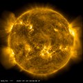 Look near the end in the center of the sun for a coronal mass ejection.
