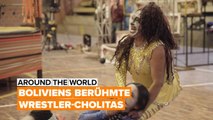 Wir stellen dir eine Cholita aus Bolivien vor, die vor Publikum im Ring kämpft. Als Cholitas werden indigene Frauen in Bolivien und Peru bezeichnet.