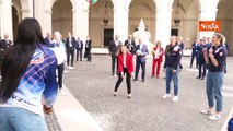 Meloni palleggia con Egonu e le giocatrici del volley femminile italiano