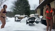 Yarı çıplak halde kara balıklama atladılar... Denizde yüzer gibi karda kulaç attılar
