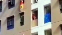 Seorang wanita nekad bergelantungan di jendela, gara gara cekcok sama suami.