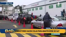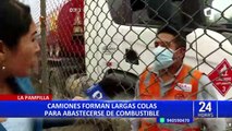 Decenas de camiones hacen una larga fila para abastecerse de combustible, pero se podría agravar la escasez en los próximos días.