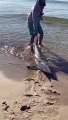 Releasing a Caught Shark Back into the Ocean