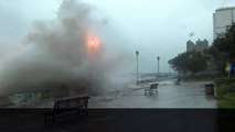 A couple got splashed and knocked over by a huge wave while recording a holiday video to send their children.Source: SWNS
