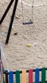 Ratas en el interior del parque infantil después del botellón.