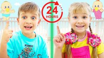 Roma and Diana wanted to try to become babies again. Can they survive 24 hours in baby Oliver's room? A collection of fun challenges for kids.Thanks for watching!!
